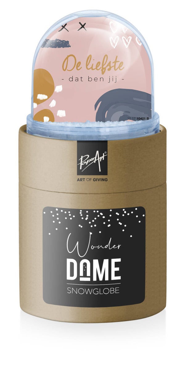 Wonder Dome sneeuwbol met de tekst "de liefste dat ben jij" en aan de andere zijde een hartjesafbeelding.